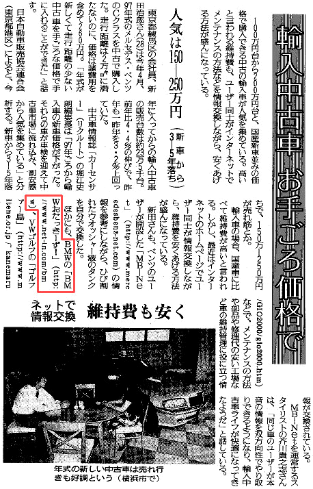 - 「98年版インターネットクルマサイトガイド」