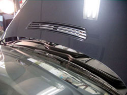 【Report by 玉テク】 往復それぞれ独立のモータで制御されフロントガラスの端までの動作を可能とし、且つ動作 ノイズを防止している。 ウオータジェットはワイパープレートの2箇所から霧状噴出される仕組みとなり、ウインドウを 効率的に拭くと共に、ウオッシャー液の少量で済むメリットがあるようだ。 また、なんと!このワイパーラバーの劣化防止に、3〜4日毎に駐車していてもワイパーは 微動動作をし、ゴムの当りを反転することによって劣化を最小限にするらしい。(驚き) 【Report by 中橋】 ルックスの面から大きく進歩したのが、ボンネットにウオッシャーノズルがなくなったこと。 車内からはワイパーをオフにすると見えなくなります。 空気抵抗の面だけでなく、ボンネットへの液垂れがなくなり、 噴出量が少なくするためという発想がすごい。 メンテナンスフリーに近づけるために、つまりはエグゼクティブの時間を無駄にさせない というスタンスがさすがは7シリーズという気分になります。 |