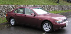 【Report by 玉テク】 新型7シリーズ(E65)は、その特徴的なフロント マスクに誰もが印象付けられたと思う。 自分もネットでスクープ写真をひと目見たときは、まさか!?と信じず、雑誌で見せられた時 には正直そのデザインに落胆した。(笑) デザイナーは「鷹」をイメージしたという。今回の試乗会で実車を前にして、いろいろな 角度から、各ボディーカラーも織り交ぜて見ていると、次第に違和感が薄れてきた・・・ いや無くなってしまった。 これまでのBMWの顔と違うがキリッとした「鷹の目」、リアセッションからトランクへの処理 は「鷹が羽根を畳んだ様」な大胆なデザインにも見える。 先代に比べよりエグゼクティブで落ち着いた印象ながら、サイドルックはBMWとわかるスポーティ なライン。 やはり人間3次元で物を見ると量感と質感が見えて来る。 ・・・違和感がないどころか、このBMWカッコイイ!と感じてきた。 スペックを見るとボディはかなり大型になっている。車に近寄ってみると、車高もありかなり 巨大だ。旧型(E38))に比べて長さ+45mm、幅+40mm、高さ+55mm、ホイル ベース+60mm、と一回り大きい。(ちなみにメルセデスSクラスと比較すると、長さ−15mm、 幅+45mm、高さ+45mm、ホイルベース+25mmとなる) 購入される方はパーキングスペースを事前に十分確認する必要があるかもしれない。 ホイールは17インチが標準。18、19インチとラインアップする。 19インチのホイールには275サイズのタイヤが装着されていたが大人しく収まっているのには驚いた。 【Report by 中橋】 エクステリアデザインについてはこのみの話になるので評価がわかれるところですが、 見慣れてくると、いい感じにBMWです。 もっとも注目すべきは、いままでのBMWとは随所に違うテイストをおりまぜていること でしょう。 サイドのモールがないこと、リヤトランクまわりのデザイン、ウェッジシェイプからの決別、など 今後のBMWデザインの方向を知る上で注目に値するものだと思います。 特に、リヤのサイドパネルとリアライトパネルとトランクリッドの面のとり方は いままでの車にない機能美を感じさせます。 |