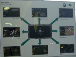 【Report by 中橋】 このシステムが新型7シリーズのもっとも見所の多い部分かと思います。 iDriveというのはコントロールコンセプトのことで、下記の装備で構成されています。 ・コントローラー(センターフロアにあるダイヤルコントローラー) ・コントロールディスプレイ(センターにある液晶画面) ・リモートコントロールマルチファンクションキー ・スタート/ストップボタン ・インフォメーションディスプレイ(メーターパネル内) ・マルチファンクションステアリングホイール ・6速オートマチックトランスミッション ・ボタン式パーキングブレーキ てっきりコントローラーと液晶画面のことだけを指すのかと思っていたのですが、 これらの電子制御の組み合わせで構成されているものなのでした。 ドライバーが運転に集中できるように作られたものです。 めったに使わない機能のためのスイッチ類が激減しているので たしかにすっきりして集中しやすいと思いました。 液晶ディスプレイの配置も適切で、視点移動が少なくてすむのは わかりやすいメリットでした。やっぱりスピードメーターと高さが同じところに あるのは非常に便利。 まさに人間工学研究がもたらした成果なんでしょうね。 助手席に乗るとついiDriveのいろいろな機能を探りたくなります。 操作自体は直感的です。 コントローラーは運転席からだけでなく助手席からも操作できます。 なお、個人的には右手で操作するほうがなじめました。 具体的には右ハンドル仕様で運転時に左手で操作するのはちょっと慣れが 必要な気がしました。これは個人差があるかもしれませんが購入時は いろいろ触ってみることを薦めます。 コントローラーは8方向(前後左右斜め)にスライドできます。 また回転、クリック(押す)という操作も組み合わせられます。 マウスをうごかすようなものですね。 さらにおどろいたのは可変反力フィードバックという仕組みです。 電動モーターが内臓されていて操作に応じてダイヤル感が変わります。 すごい・・・。 メニュー構成は下記のとおりです。8方向にスライドして選びます。 【電話】 ハンズフリーの電話を操作するための画面。 【ボード・データ】 オンボードコンピュータ、チェックコントロール、 サービスステイタスなどを表示します。 【Navi】 DVDナビゲーションシステムの画面です。 【ヘルプ】 ショートヘルプテキスト(画面右側に表示を行う)、 メニュー変更時のタイトル表示などを行います。 【AV】 ラジオ、CD、MD、TVなどをコントロール。 【設定】 日付、時間、言語、ディプスプレイモードなどを設定。 【AC】 エアコン、シートヒーター、パーキングベンチレーションなどを設定。 【BMW Assist】 携帯電話によるモビリティーサポートの操作。別途加入契約必要。 対話形式での操作かつ、メニューの分類が適切で、10分ぐらい遊べば 全機能へのアクセスは可能になると思います。 すでに270種類の機能があるそうですが、それほど違和感もなく まとめられているなと思いました。 エアコン、カーステなどはiDriveを使いこなせない人(ま、最初使えない人は いるかもしれないので)にも通常のスイッチが配置されているので 不都合は生じないように出来ています。 ダイレクトに操作するほうが便利な機能はちゃんとすぐに使えるので 心配はいりません。 肝心の液晶ディスプレイは常に見やすいように、反射制御、バックライト、 ヒーターシステムなどの技術がつぎ込まれています。 どこにもぬかりはないように思いました。 今後の新型BMWへの搭載が気になるところですね。 その際にはマニュアルシフトの場合どうなるんだろう?とかいろんな 期待と不安がまざりますが、楽しみに待っていたいと思います。 |