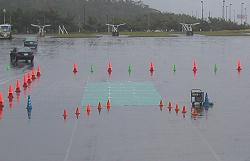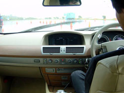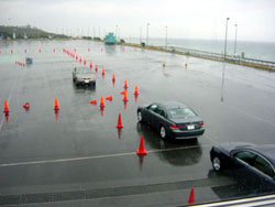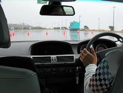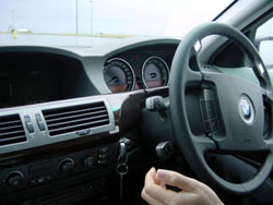 【Report by 玉テク】 ボタン式パーキング プレーキ装備。 渋滞時など、発進と停止を繰り返す時などパーキングブレーキが自動的に機能する オートマチックホールド機能によりドライバーはブレーキを踏みつづけておく必要がなくなった。 また坂道発進などにもしっかりとブレーキが掛かった状態からの発進となるわけだ。 また、このブレーキシステムは非常用のハンドブレーキとしても、ボタンを押し続けることで ABS制御を含めた4輪ディスク制動が可能な仕掛けになっている。ボタンは、ステアリング 脇にあり咄嗟に押すことも可能な位置になっている。 実際に低ミューな路面(写真の緑な部分)で非常操作を体験したが、ボタン一つで ABSの作動時音(タイヤのダダダッという音)と共に車は真っ直ぐ停止した。比較試乗の メルセデスでは、フット式のパーキングブレーキだが、こちらはABSの制御も働かずリアがロック、 即スピン状態となってしまった。 【Report by 中橋】 ペダル配置は一般的です。じゃないと危ないよね。 で、ボタン式パーキングブレーキは面白いので何度かこれで急停車を試みました。 小指一本で押すだけでOKな操作感。まるでゲームです。 足元に缶がころがてフットブレーキが踏めない状態や、足がつっちゃってうごかせなくても 止まれる安心感。 (ってそんなシチュエーションがどれほどあるかはわかりませんけど。) ブレーキ性能そのものはウェット路面かつヘビー級な車体の割にはすんなり止まります。 ハイスピードからのブレーキングを試したわけではないのですが、BMWクオリティーを感じさせます。 気になるオートマチックホールド機能ですが、万が一運転手が車外に下りたとしても シートセンサーでクリープしないように設定されるなど安全性も考慮されているのは さすがです。 |